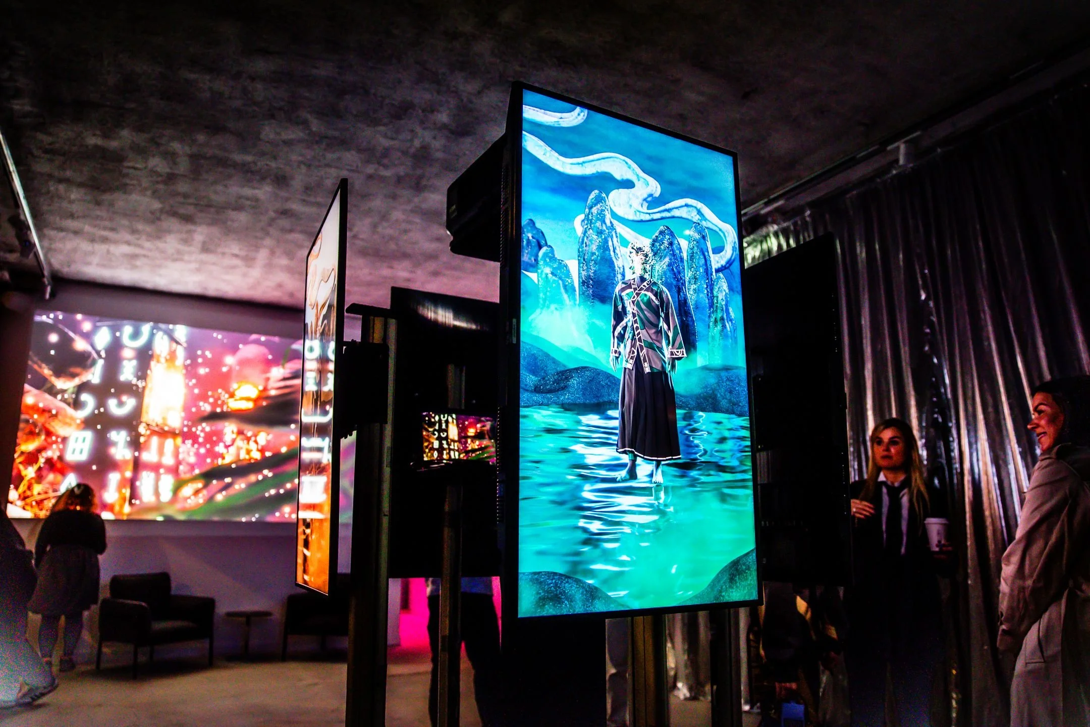 Guests moved through immersive art installations designed to explore themes of digital ownership, creative identity, and the evolving relationship between creators and technology. The environment encouraged attendees to slow down, experience the work, and engage in thoughtful conversations about how blockchain could empower artists, brands, and communities.